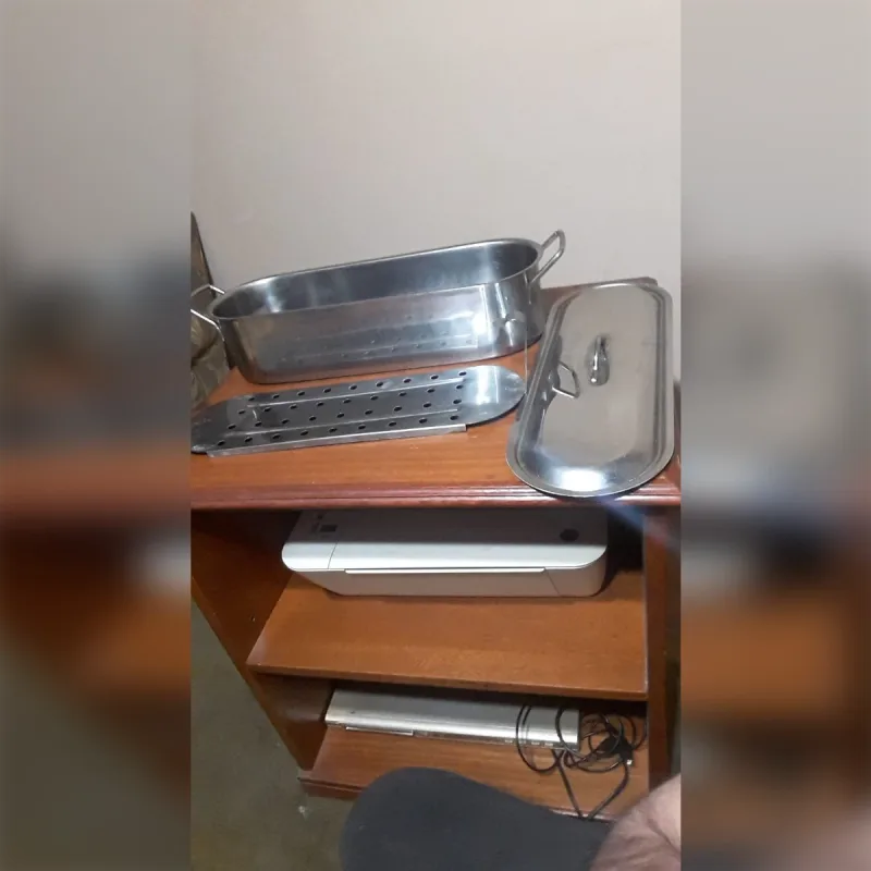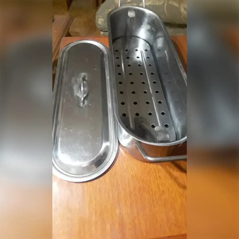 Olla de acero inoxidable para preparar matambre arrollado, excelente calidad, SE PUEDE PASAR A VER, 46 cm de largo, 16 cm de ancho y 11 cm de profundidad, es grande, consulta sin compromiso via face o celu 2212265520 ciudad de la plata centro